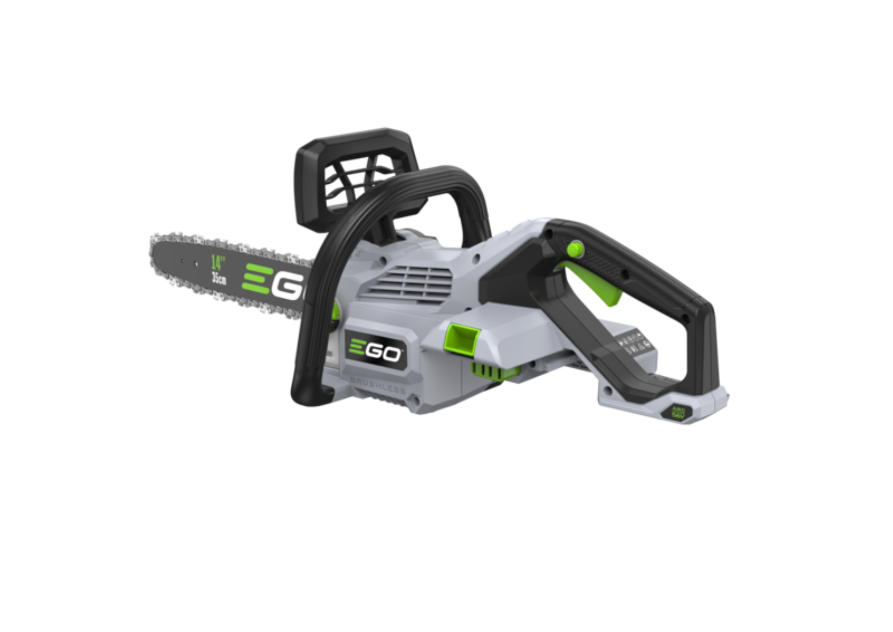EGOs 35-cm-Kettensäge hat ein Upgrade erhalten. Dank einfacher, werkzeugloser Kettenspannvorrichtung und Öleinfüllung ist die CS1410E einfach einzurichten und zu pflegen. Die deutlich verbesserte Kettengeschwindigkeit von 20 m/s sorgt für schnelle und effiziente Schnittarbeiten. Perfekt zum mühelosen Durchsägen von Ästen und mittelgroßen Stämmen bis zu 35 cm Breite. Angetrieben durch EGOs 56V-ARC-Lithium™ Akkus, kommt die Säge mit beeindruckender Laufzeit und unglaublicher Leistungsstärke, die Sie Schnitt für Schnitt weiterarbeiten lässt.