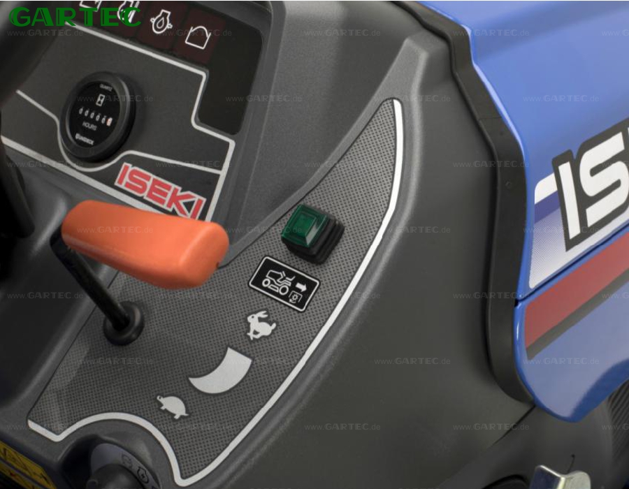 Außerdem wird gewährleistet dass Rückwärtsfahrten nur mit ausgeschaltetem Mähwerk durchgeführt werden kann.
