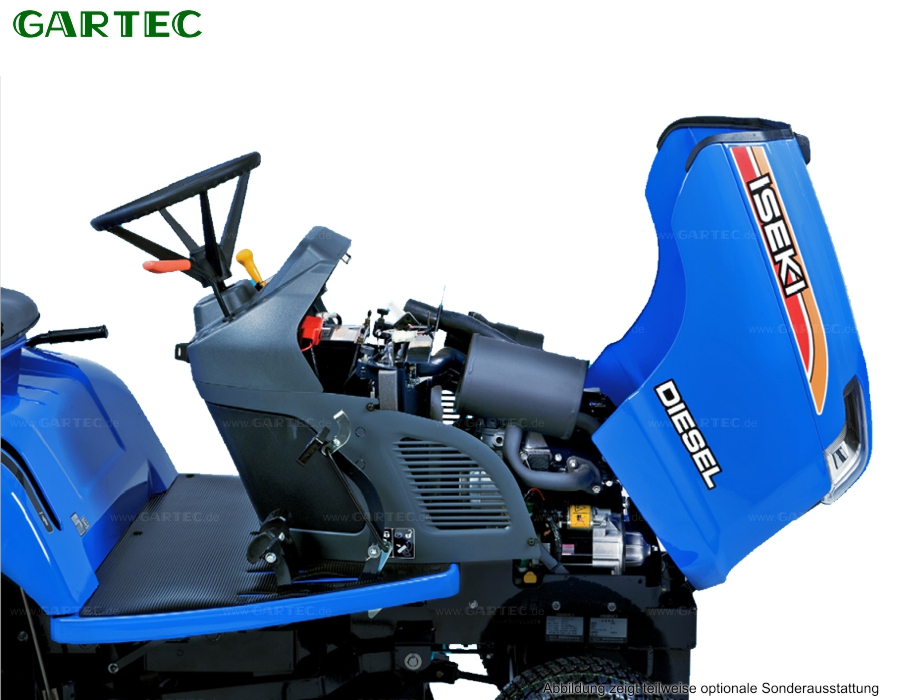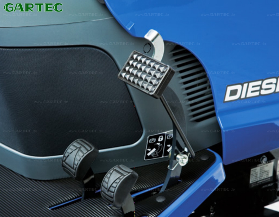 Er verfügt mit 11kW (15 PS Motorleistung nach ECE-R120) und einem sparsamen 2-Zylinder-Diesel (688 cm³ Hubraum) über hinreichende Reserven für den ambitionierten Privatanwender mit adäquaten Flächengrößen als auch den ausgebufften Profi in der Grün- und Anlagenpflege.